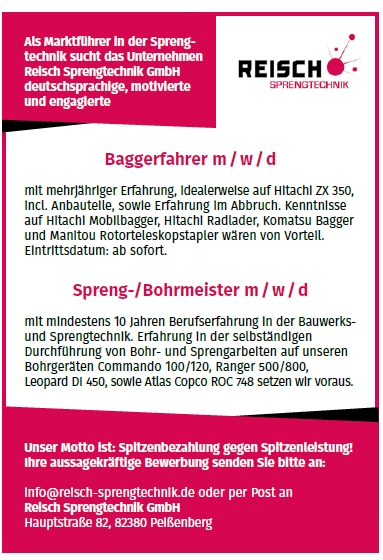 Baggerfahrer / Spreng- und Bohrmeister m/w/d mit mehrjähriger Berufserfahrung gesucht